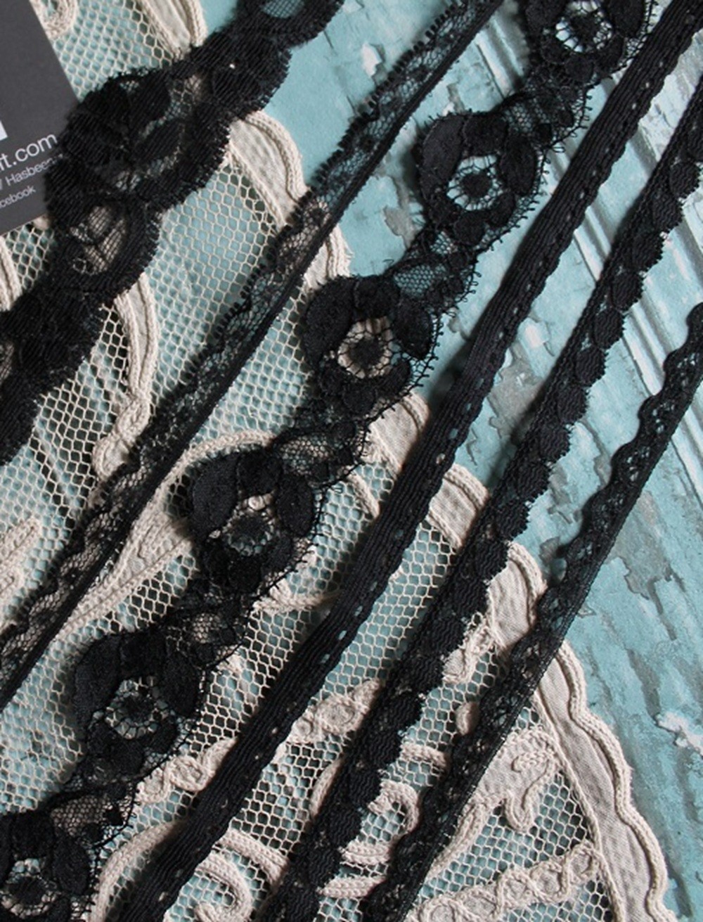 Dentelles anciennes françaises noires,5 mètres, 5.47 yards, Paquet créatif surprise,dentelles pour créations textiles,3056