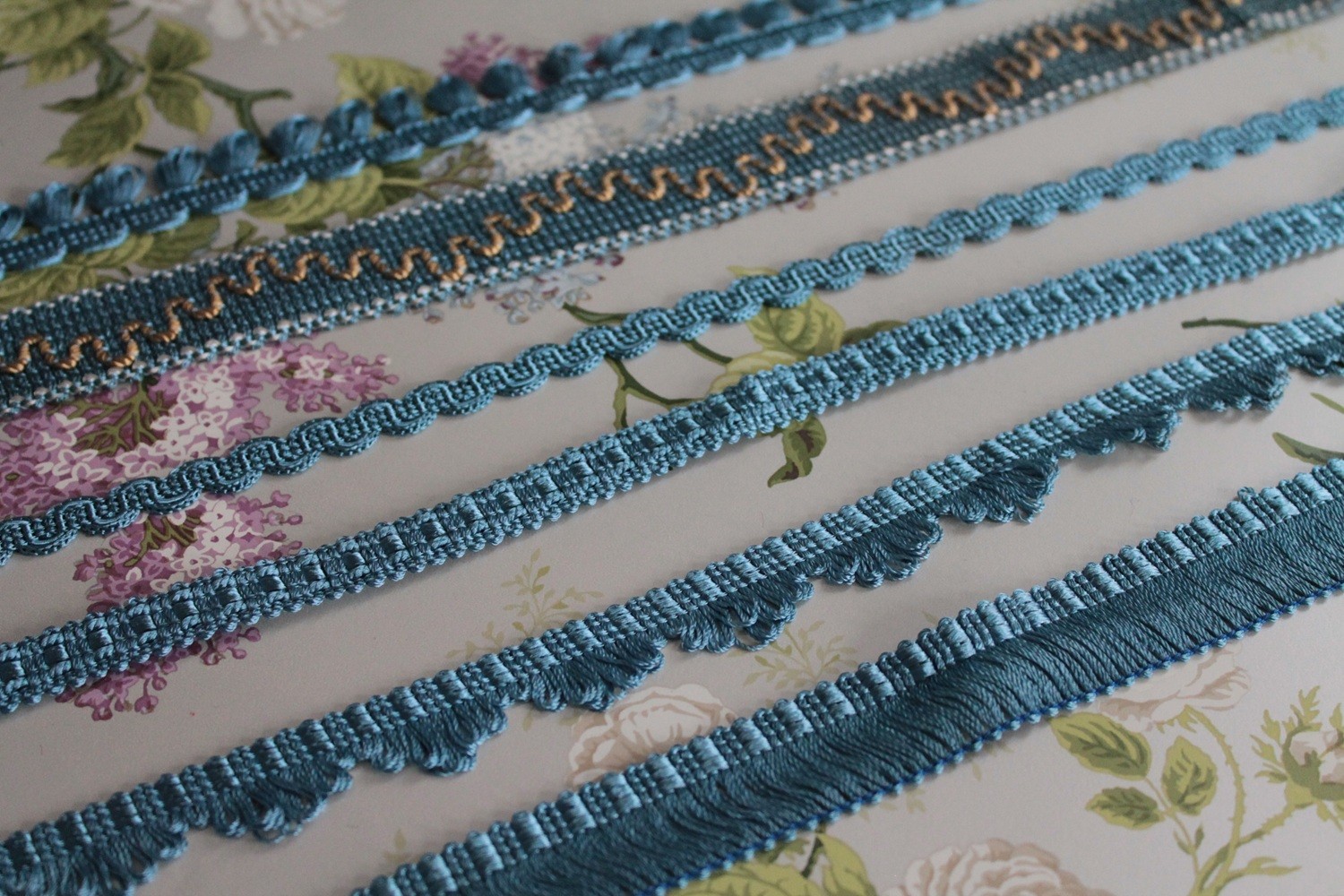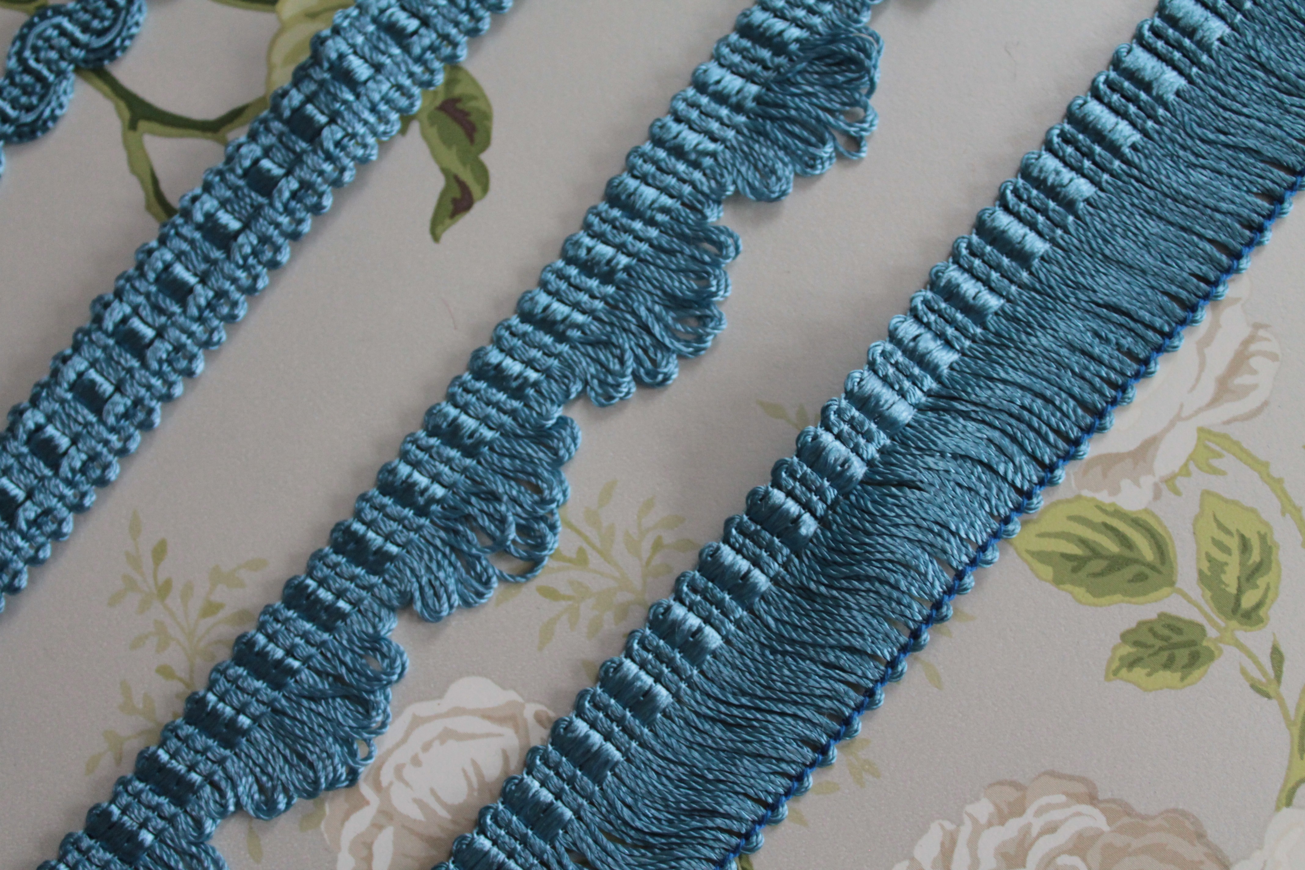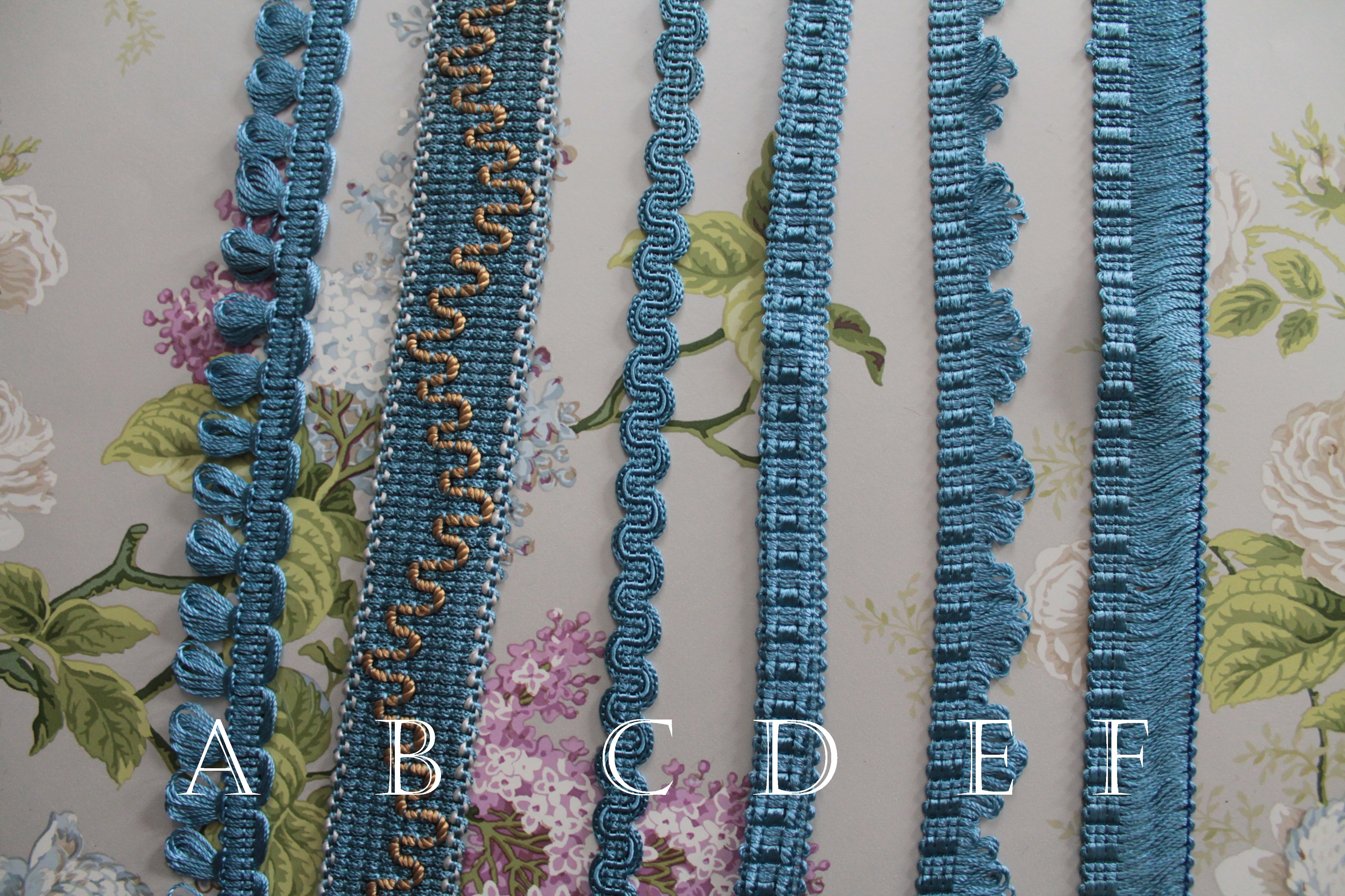 Garniture bleue de passementerie française pour bordure d'abat jour ou embrasse à rideaux, 2419