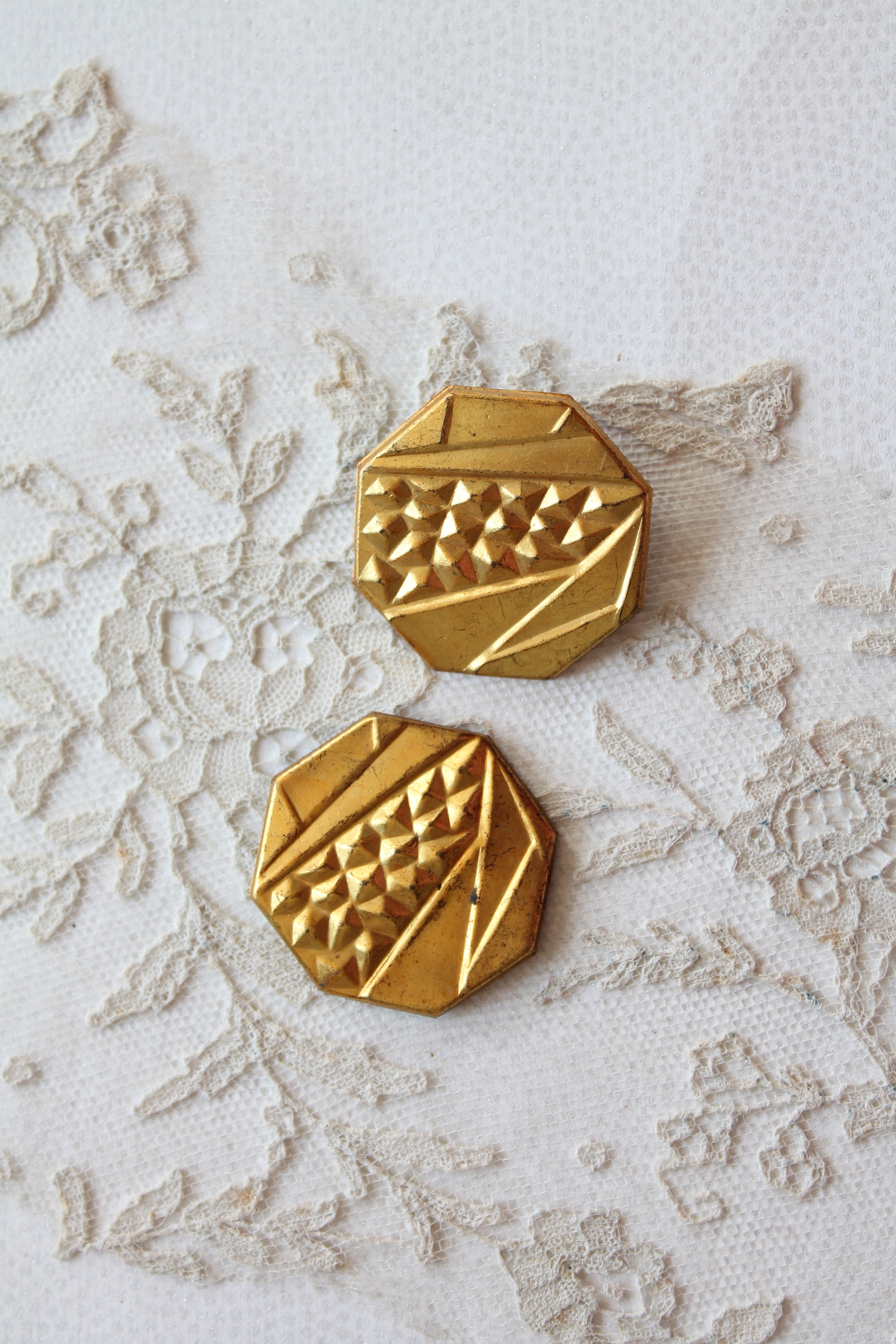 2 ornements anciens en laiton doré pour rideaux, art déco, fournitures créatives ancienne, 1930, 1258