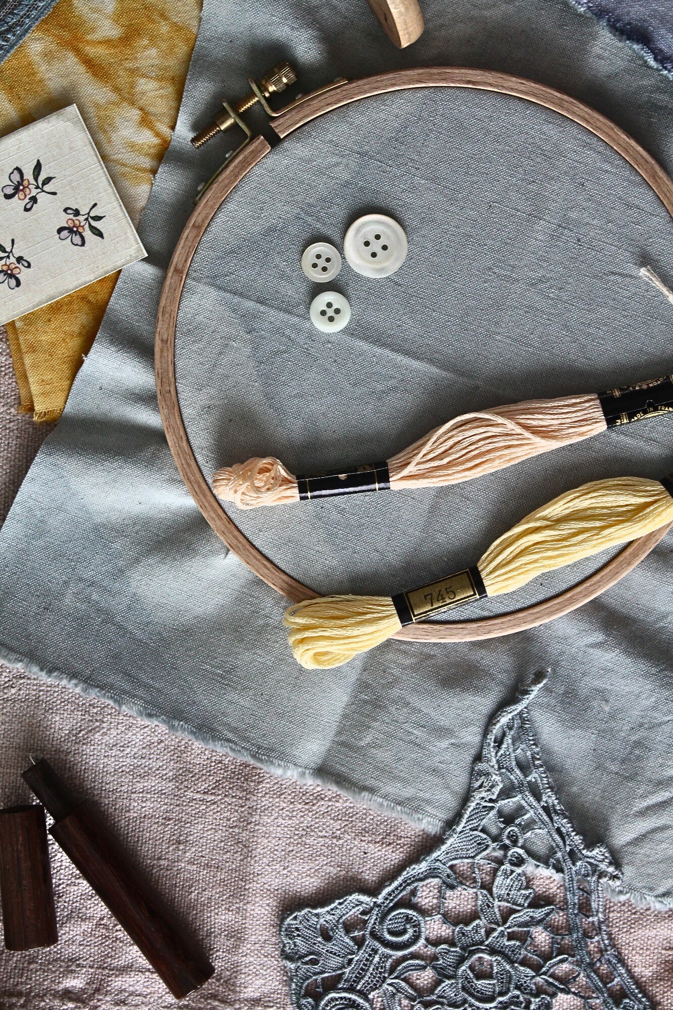 Kit Lin ancien broderie, lin centenaire de France teint en teinture naturelle végétale, 4103