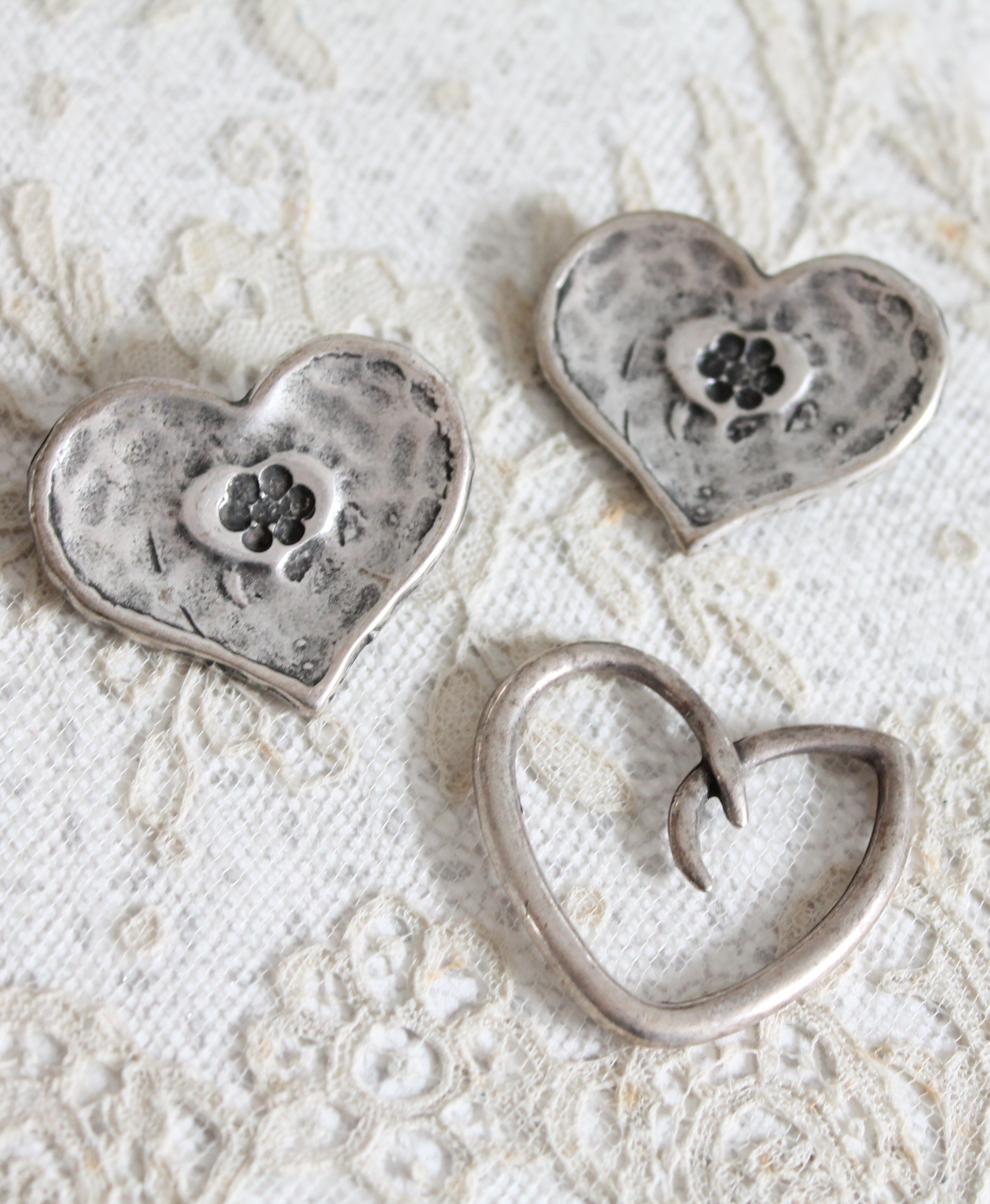 3 Pendentifs coeur vintage, coloris argenté, 4275