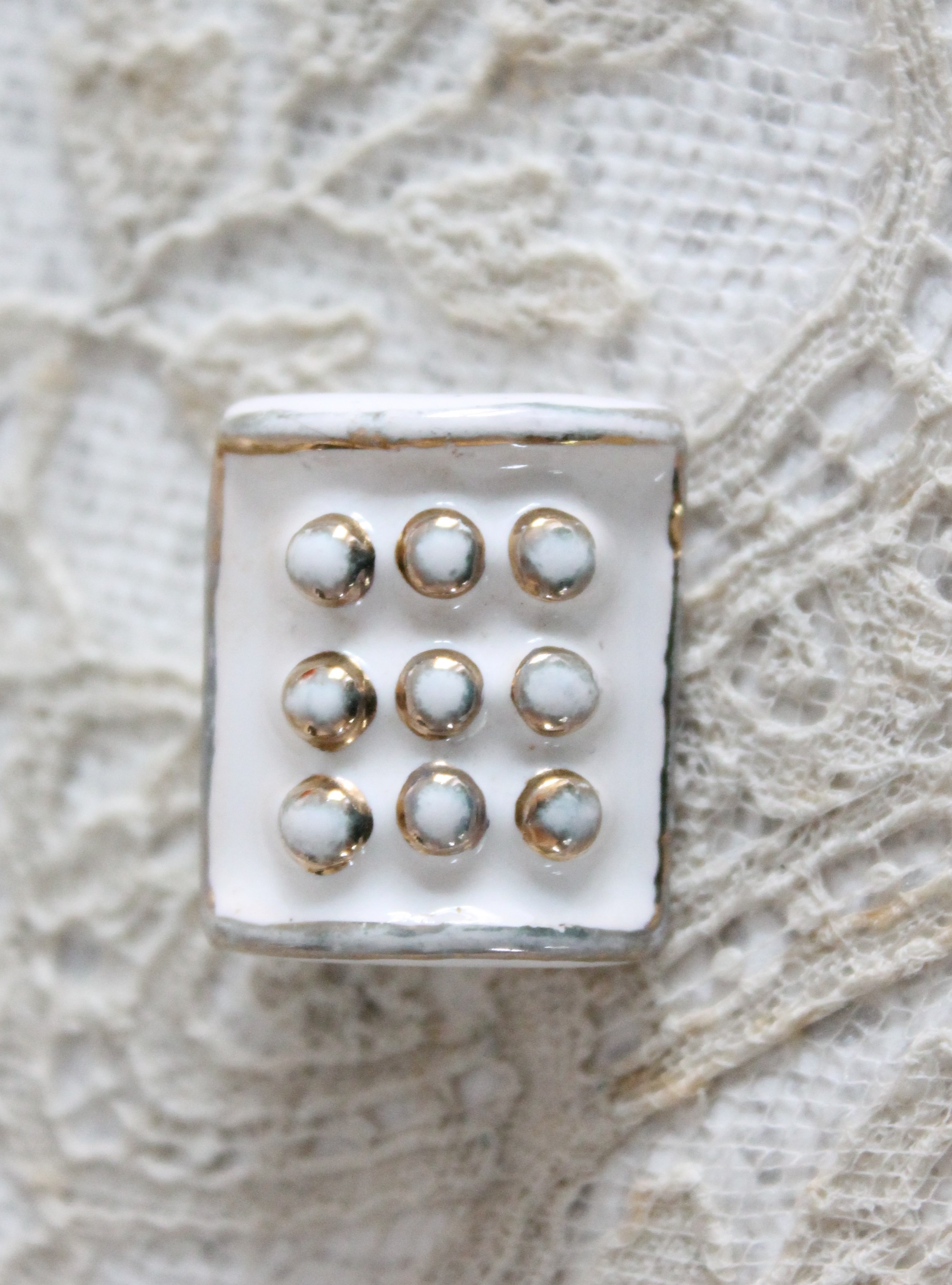 Bouton ancien blanc et or de parurier céramique 1950 Paris France, 4333