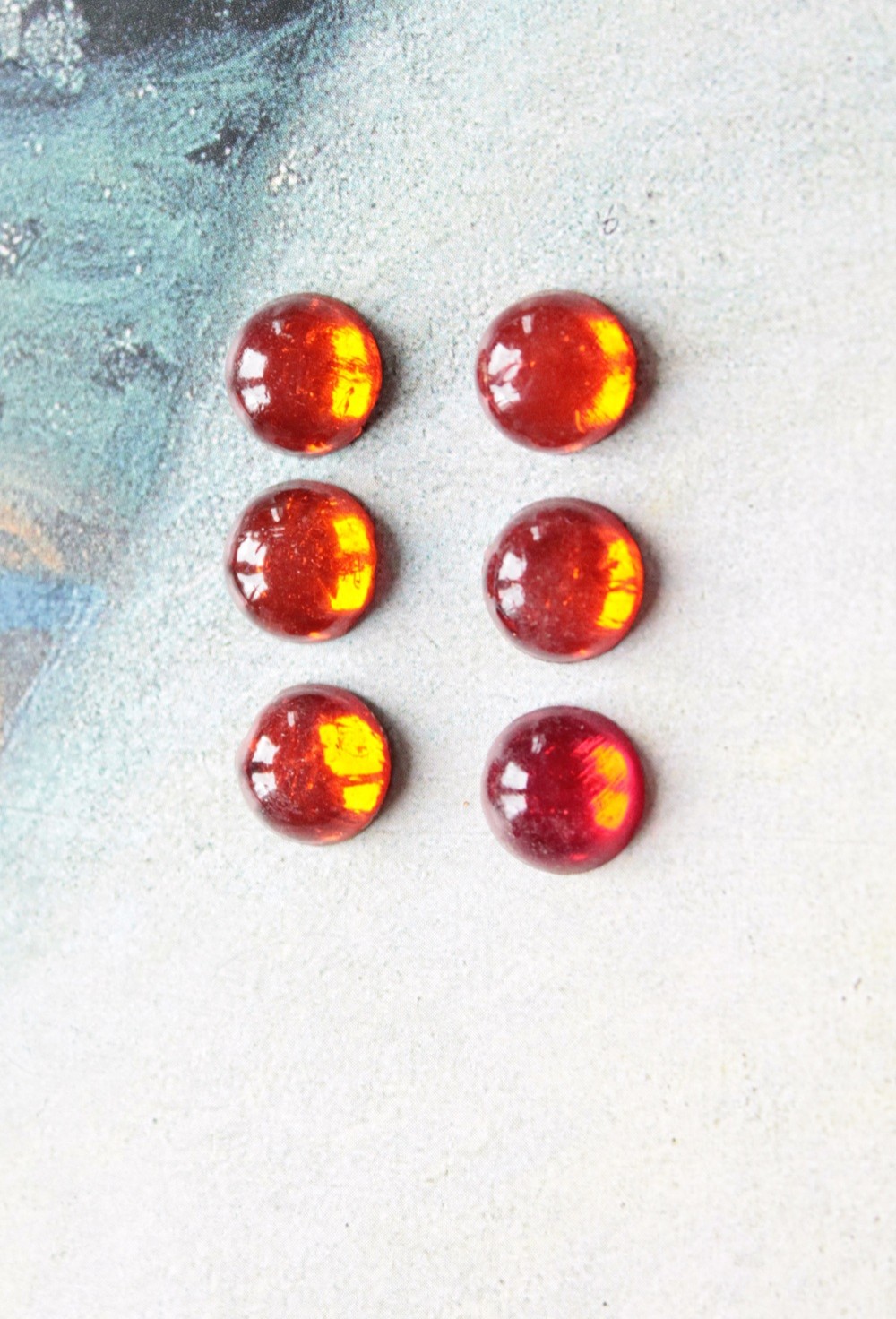6 cabochons orange vif translucide en verre, vintage, 1375
