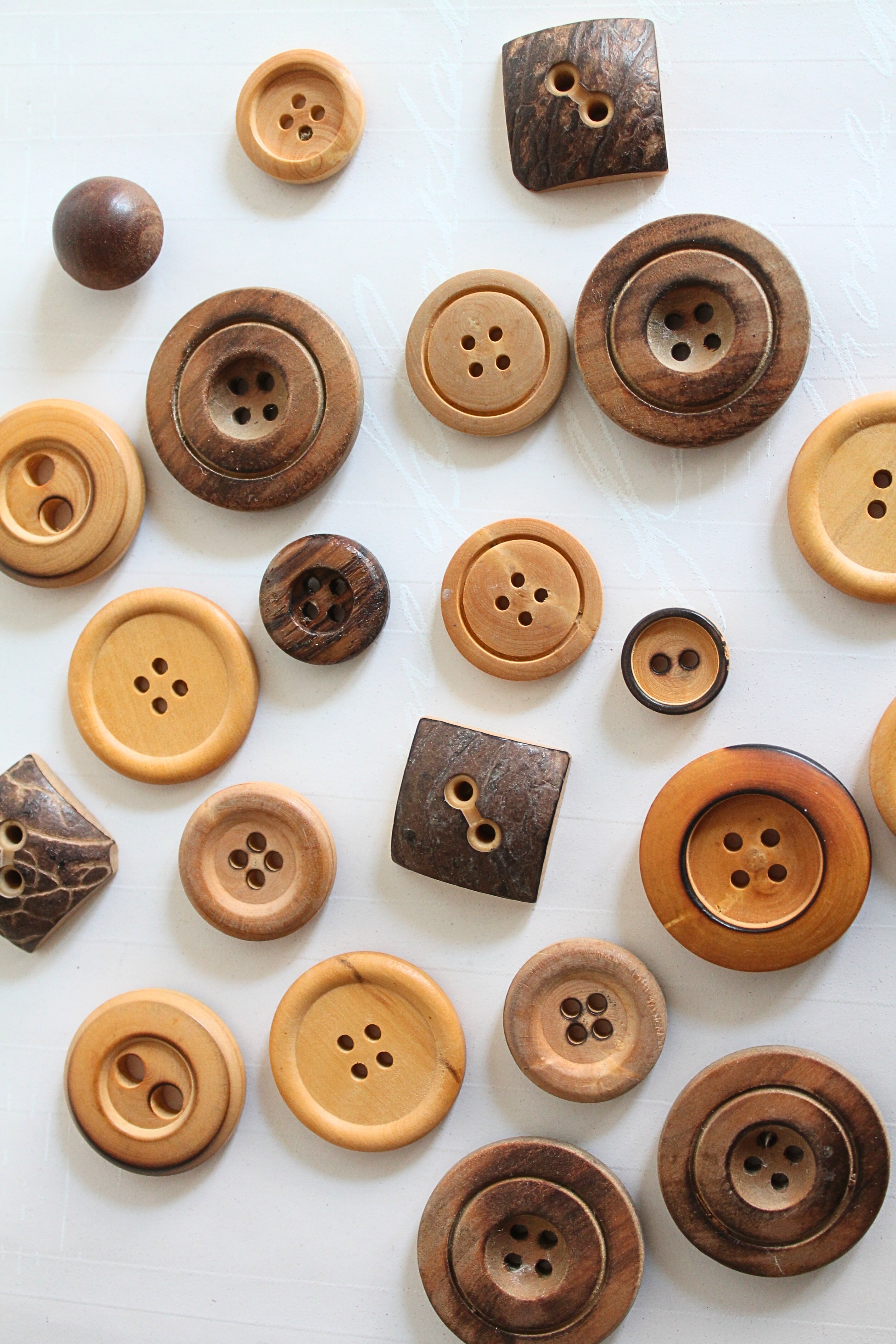 Assortiment de 22 boutons vintage – Marron, beige, noisette, noir