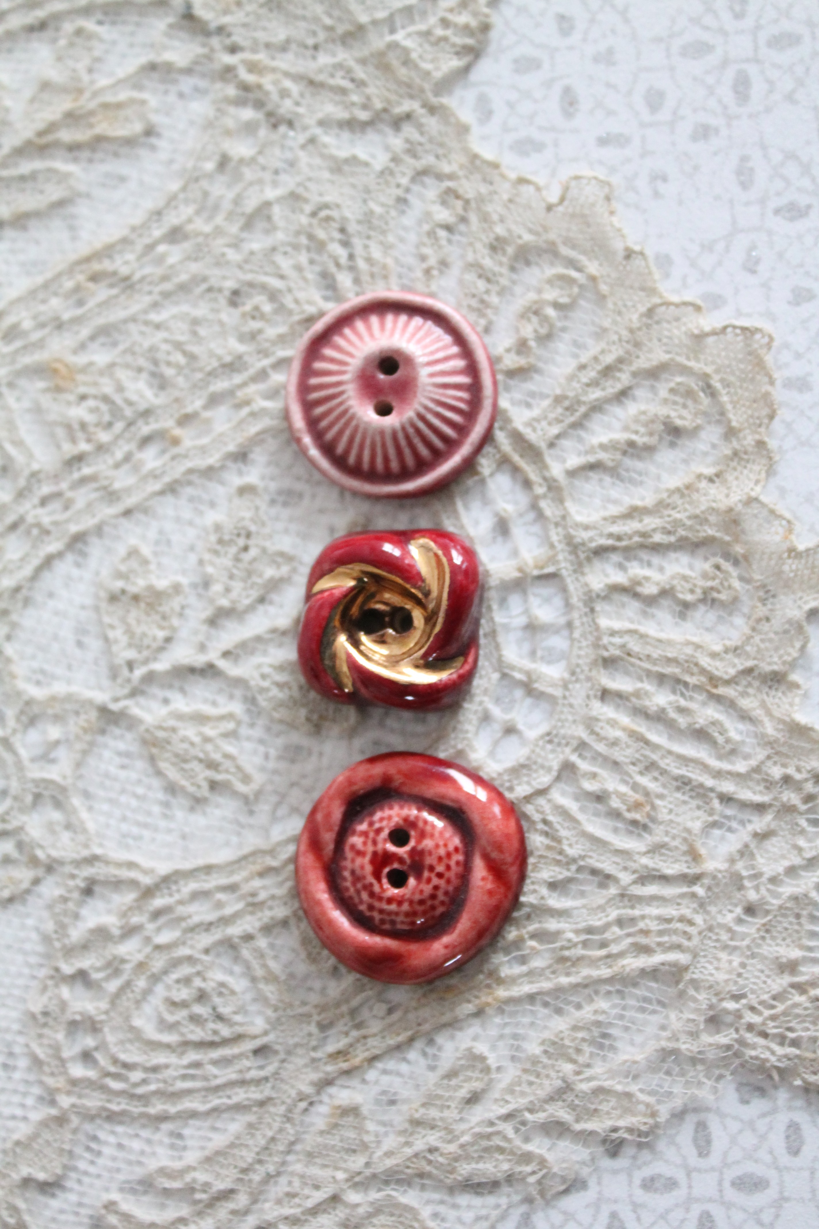Collection de 3 boutons anciens de parurier céramique 1950 Paris France, 4321