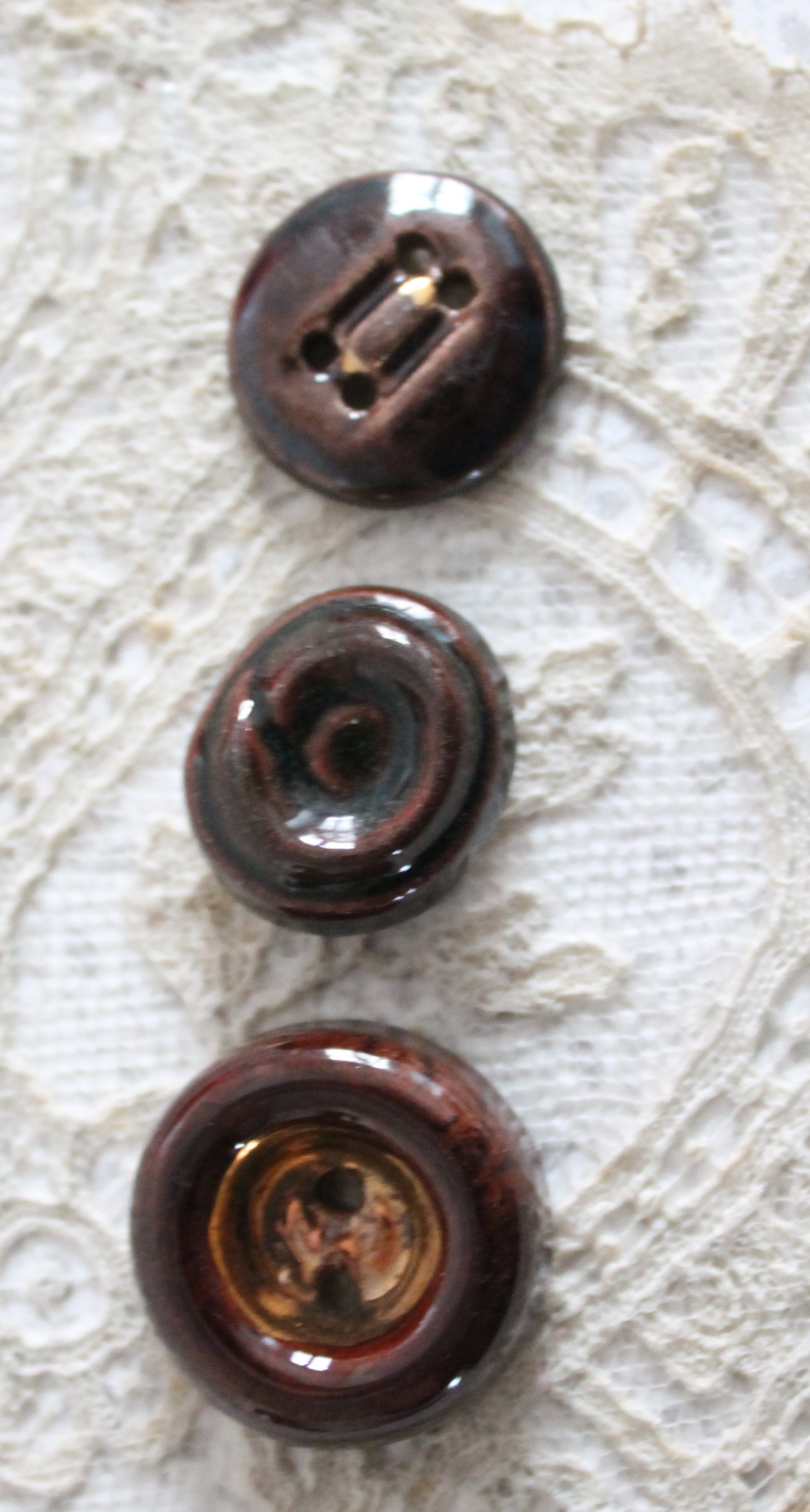 Collection de 3 boutons anciens de parurier céramique 1950 Paris France, 4332