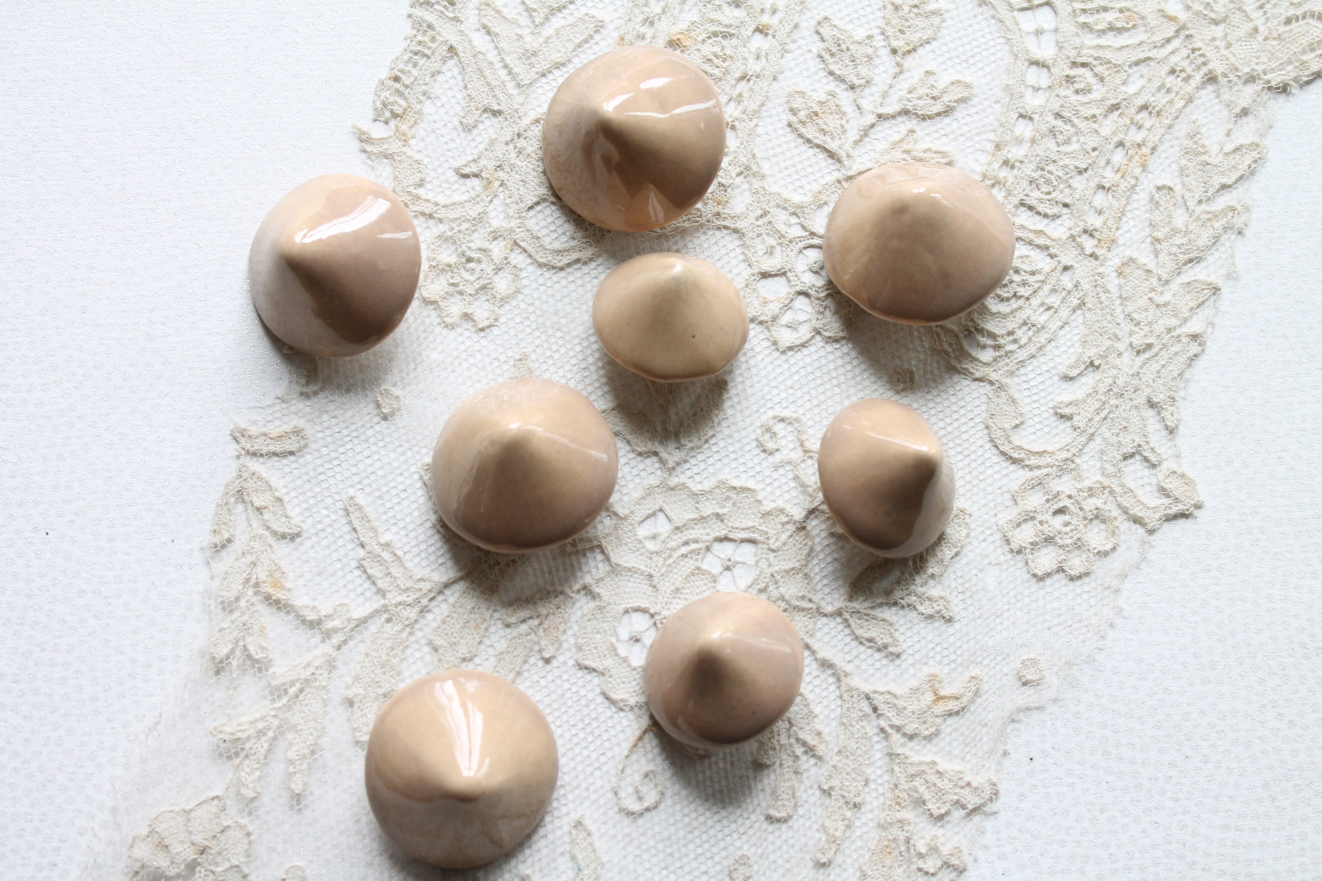 Découvrez un authentique bouton de parurier en céramique, réalisé à Paris vers 1940, attribué à la céramiste Hélène Méchin, figure reconnue des arts décoratifs et collaboratrice de la haute couture française de l’époque.