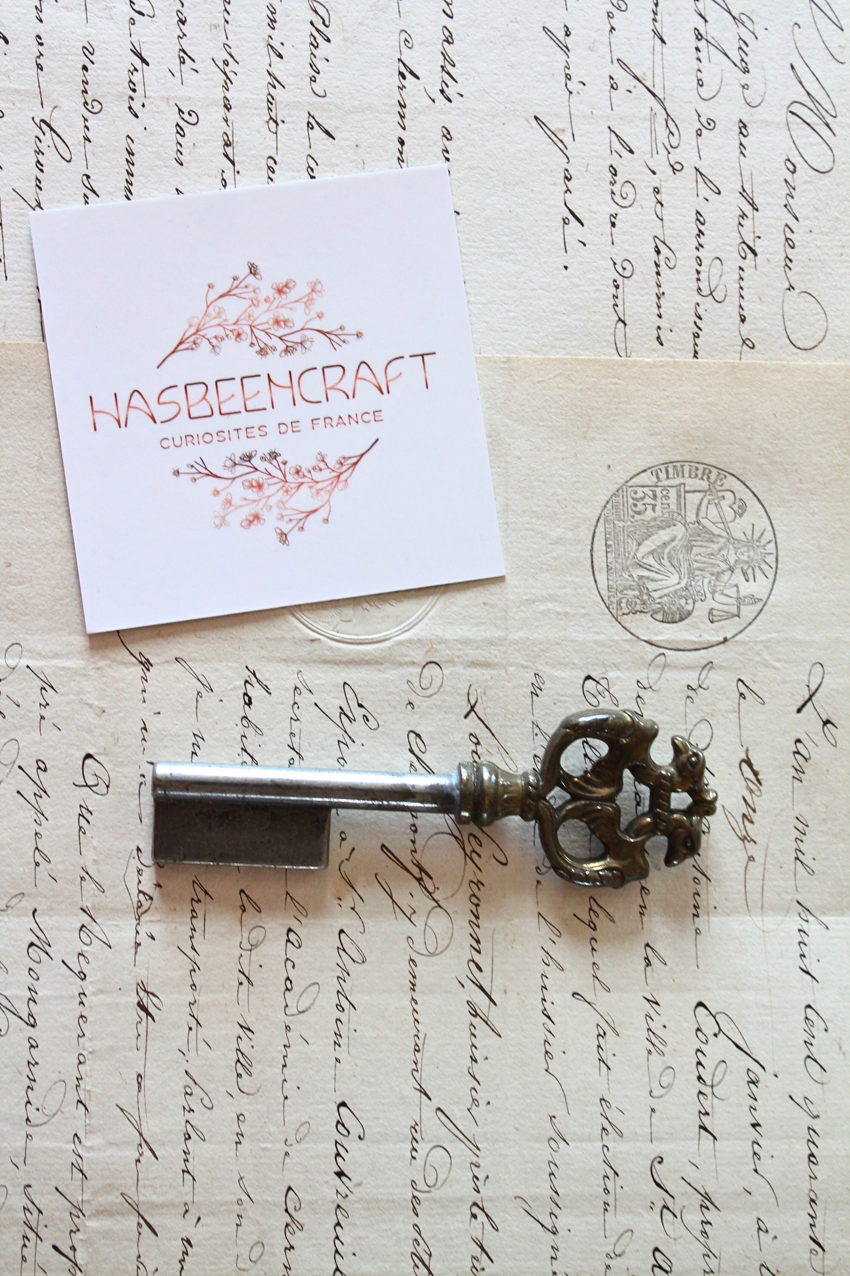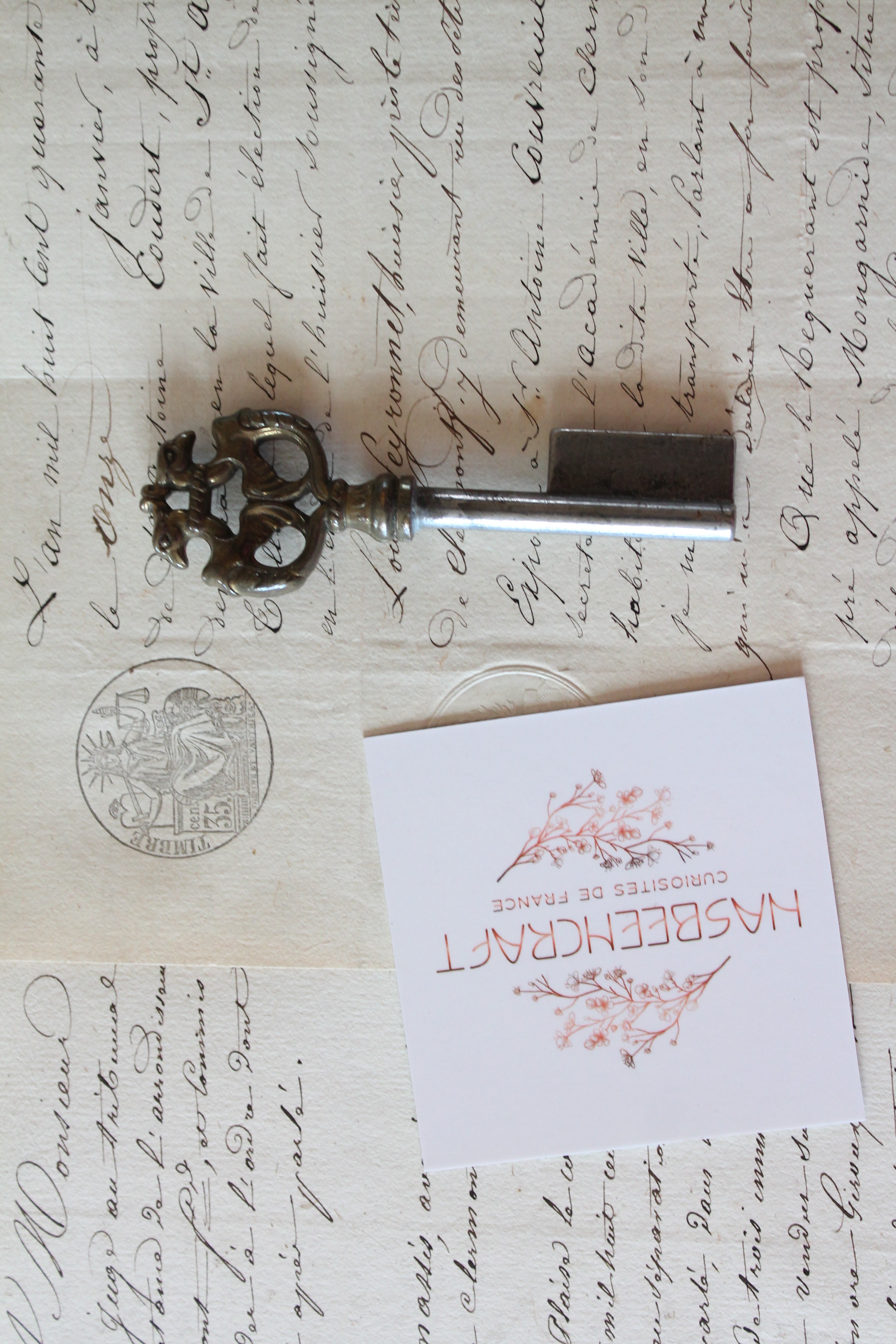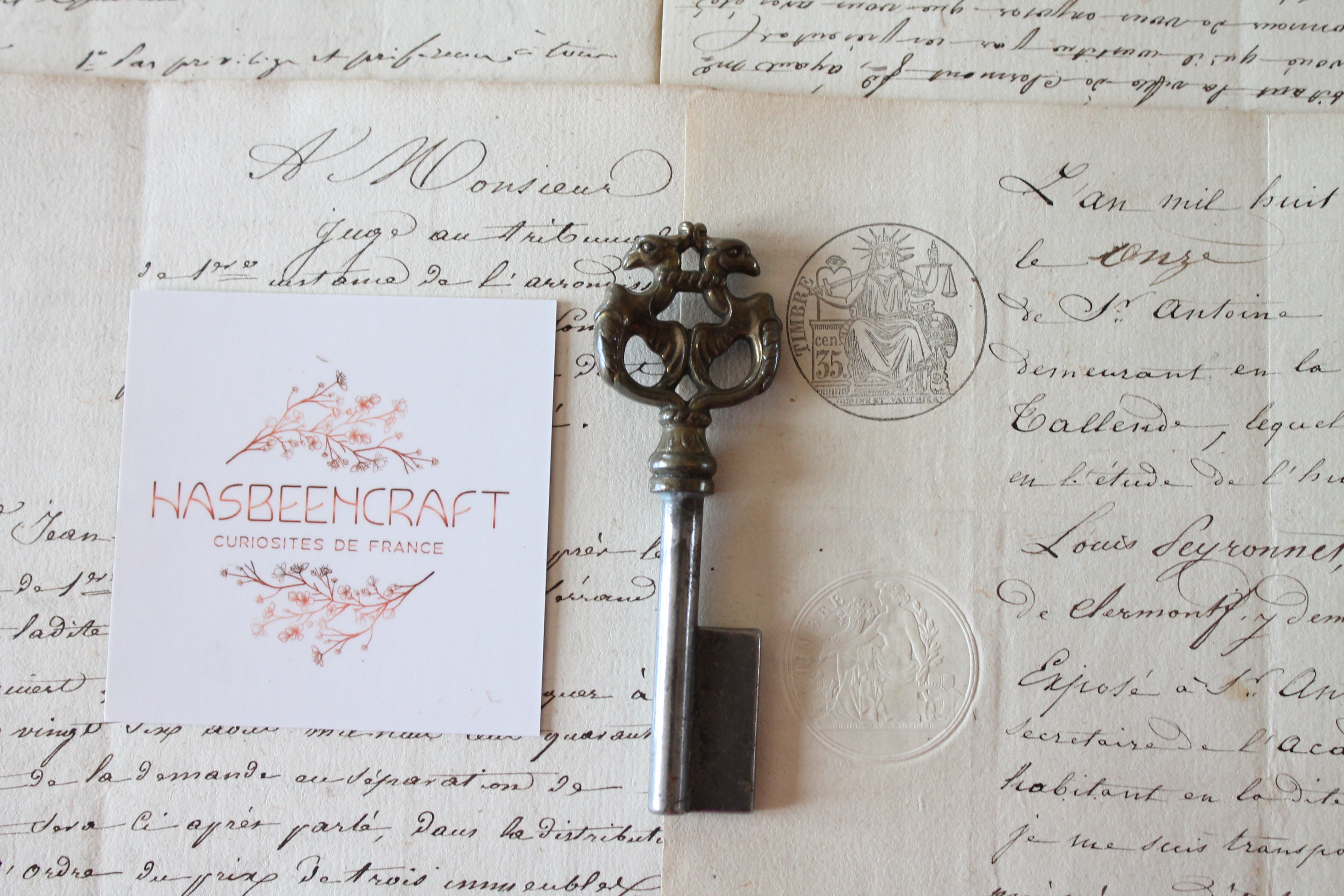 🔑 Clé ancienne à motif d’oiseau + Lettre administrative ancienne