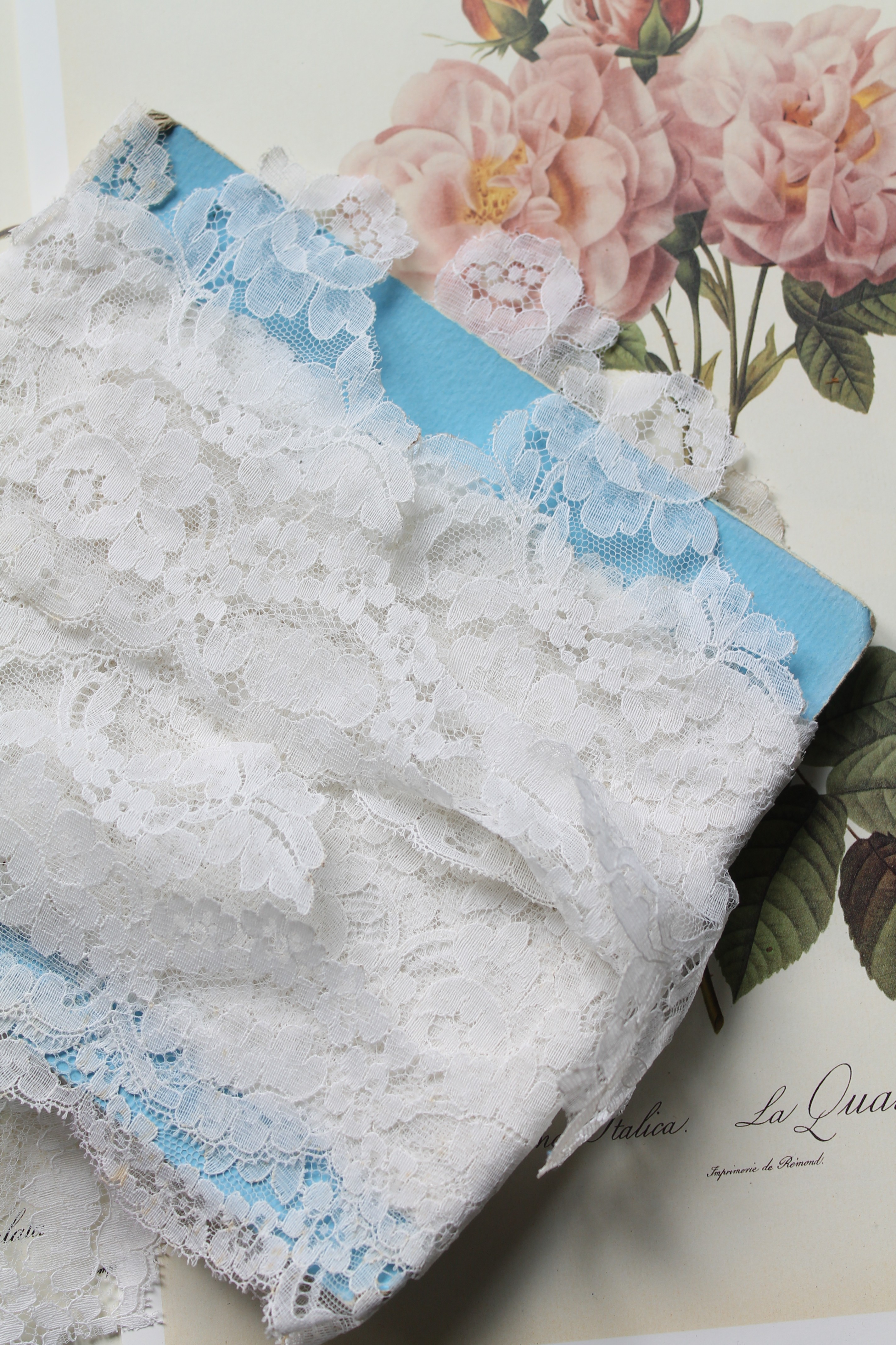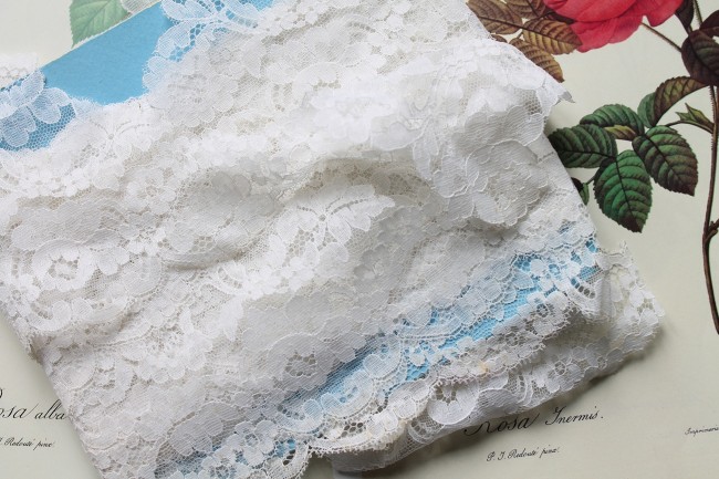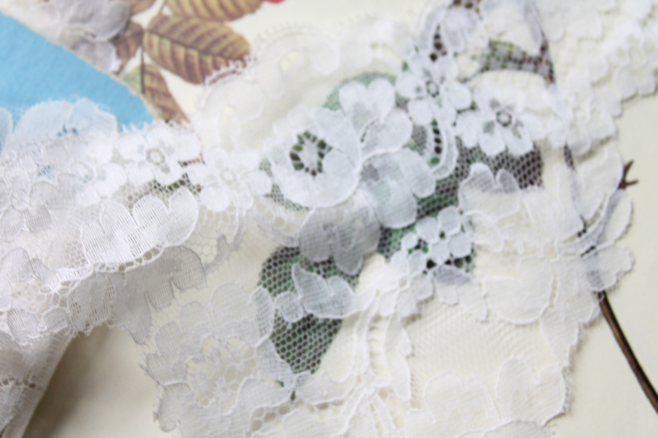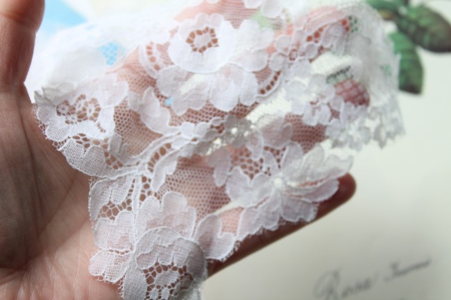 Ce modèle de dentelle rétro blanc à fleurs, d'une largeur de 12.5 cm, est fabriqué en nylon et sa longueur est 4 mètres.
