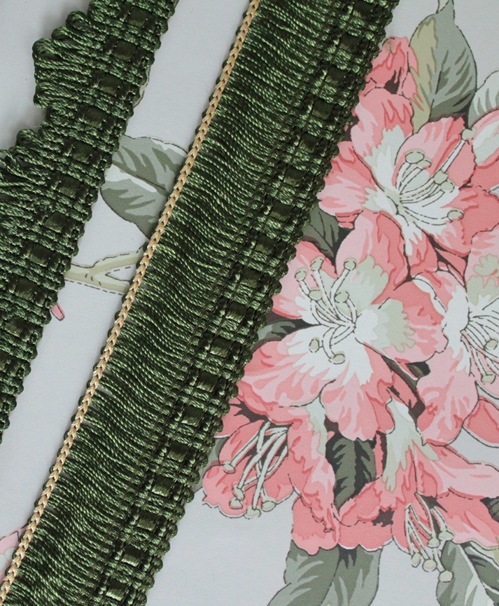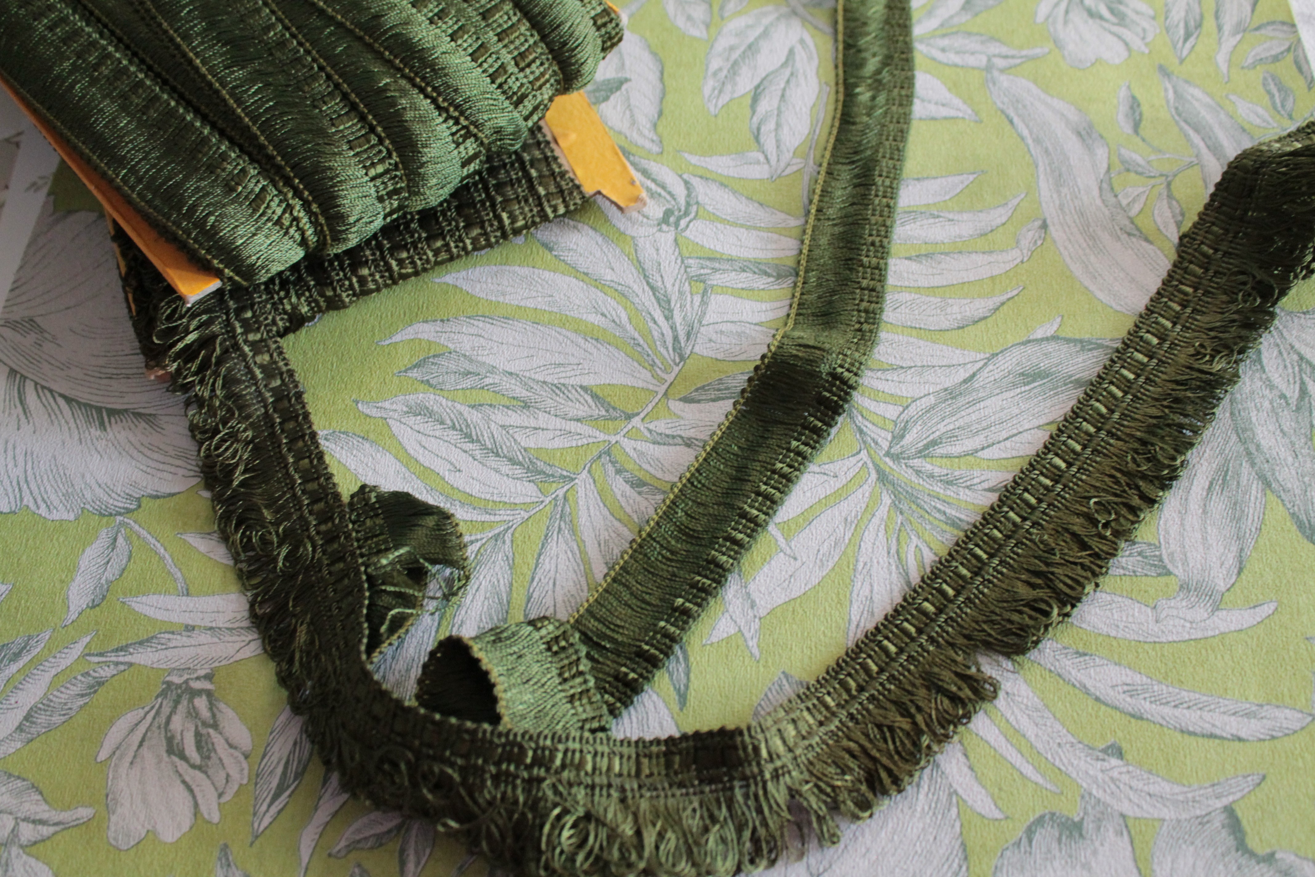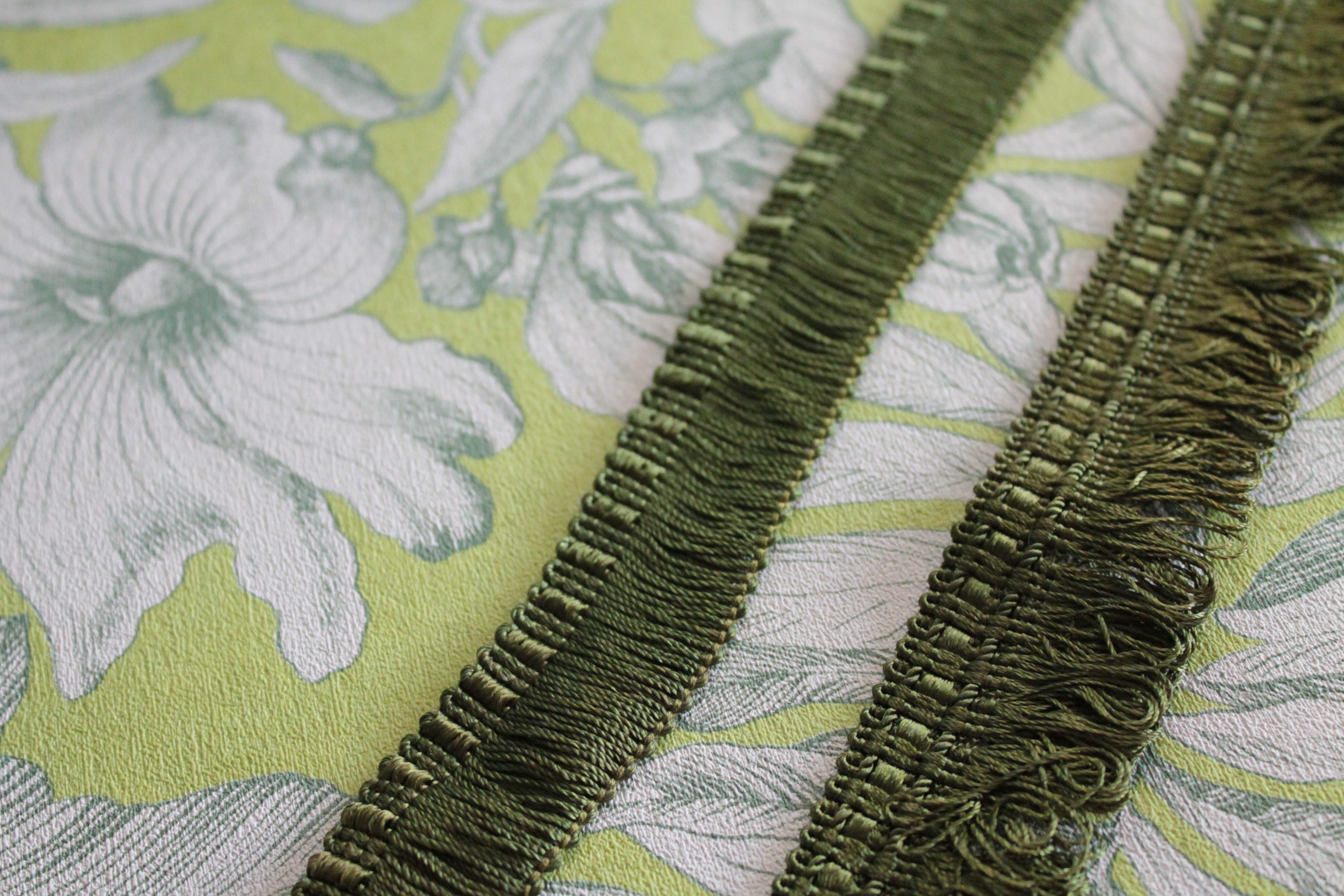 Galon de passementerie vert olive vintage – Bordure décorative pour abat-jour et décoration intérieure
