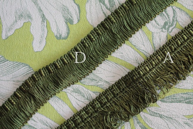 Ce galon de passementerie est proposé en plusieurs modèles : galon à franges classiques, vague, franges à pompons, Cette diversité de finitions permet de jouer avec les styles, du plus classique au plus décoratif, tout en conservant une harmonie de couleur et de matière.
