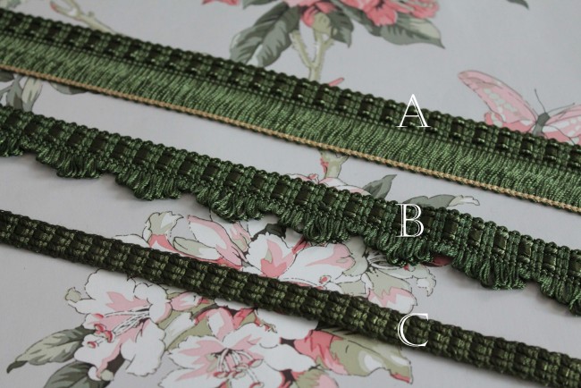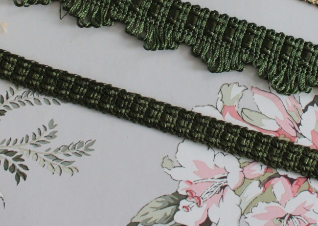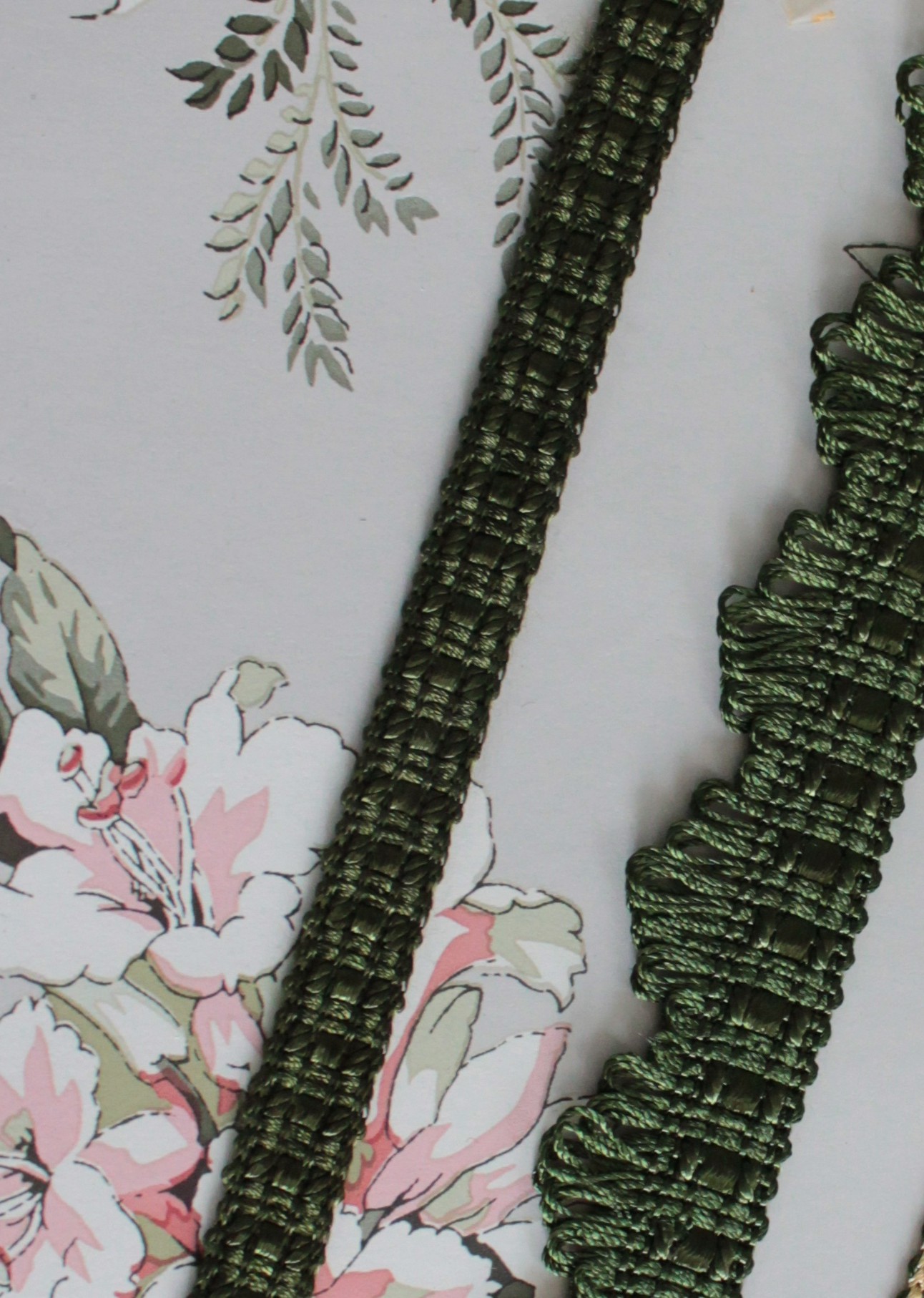 Galon de passementerie vert olive vintage – Bordure droite géométrique pour abat-jour et décoration intérieure
