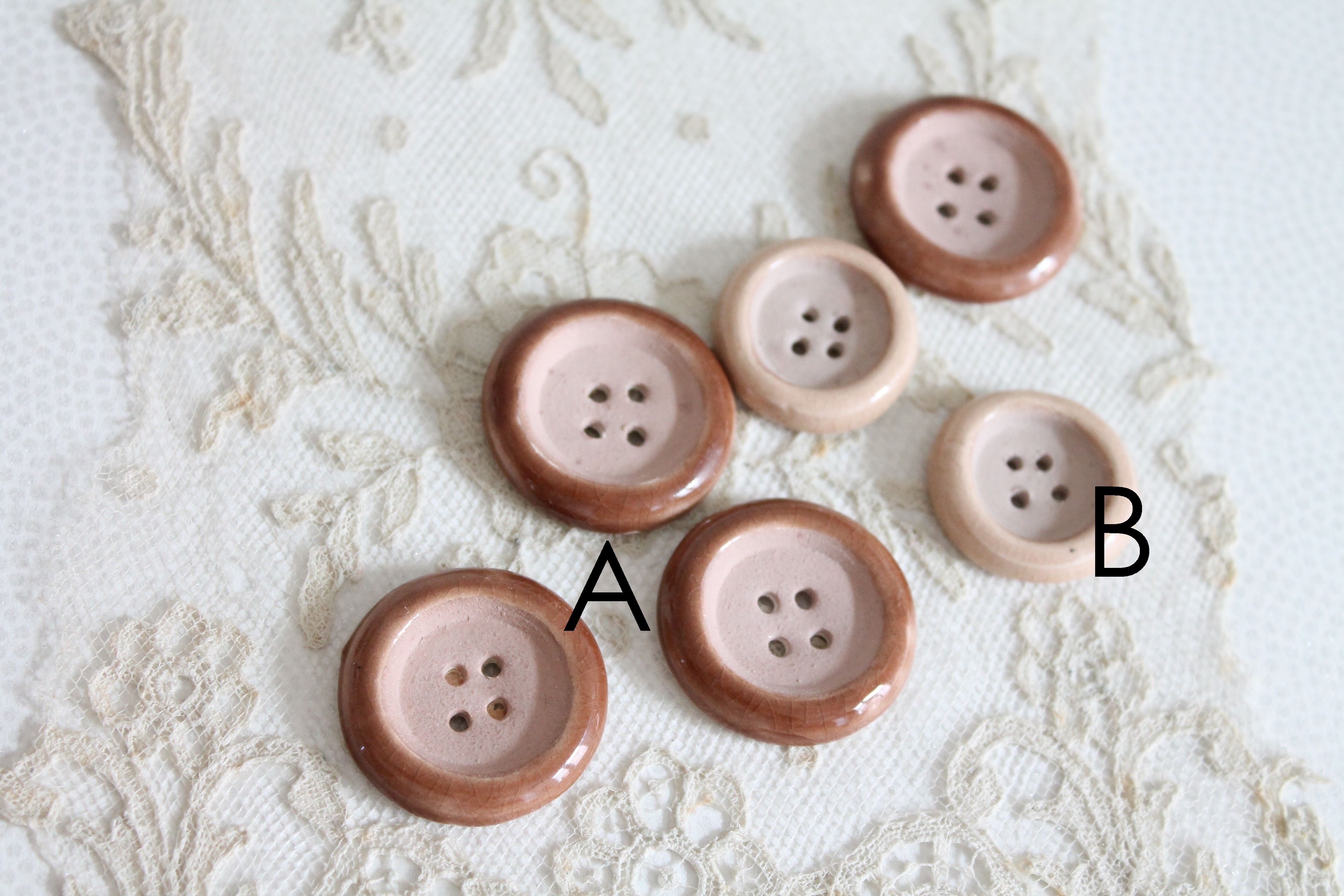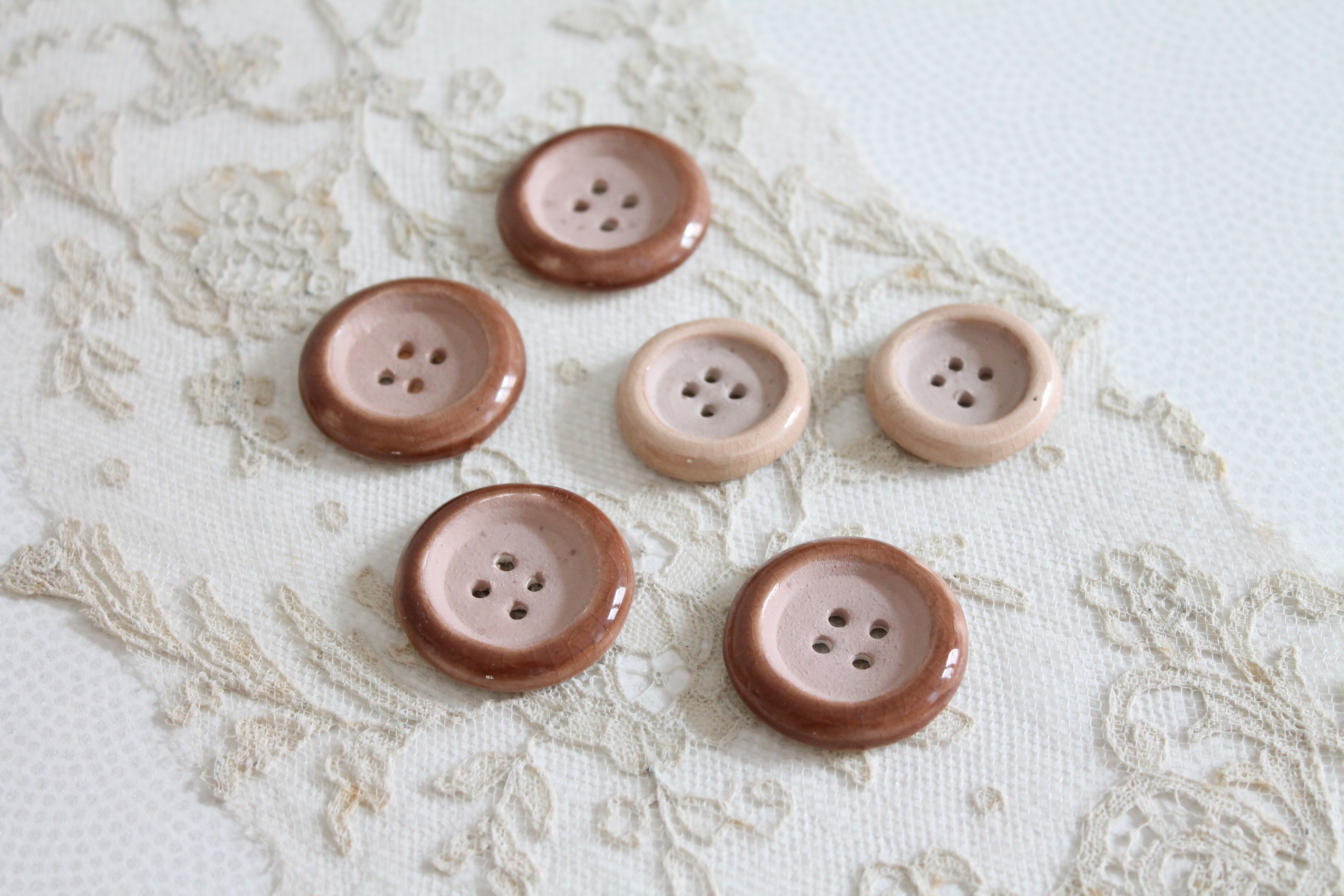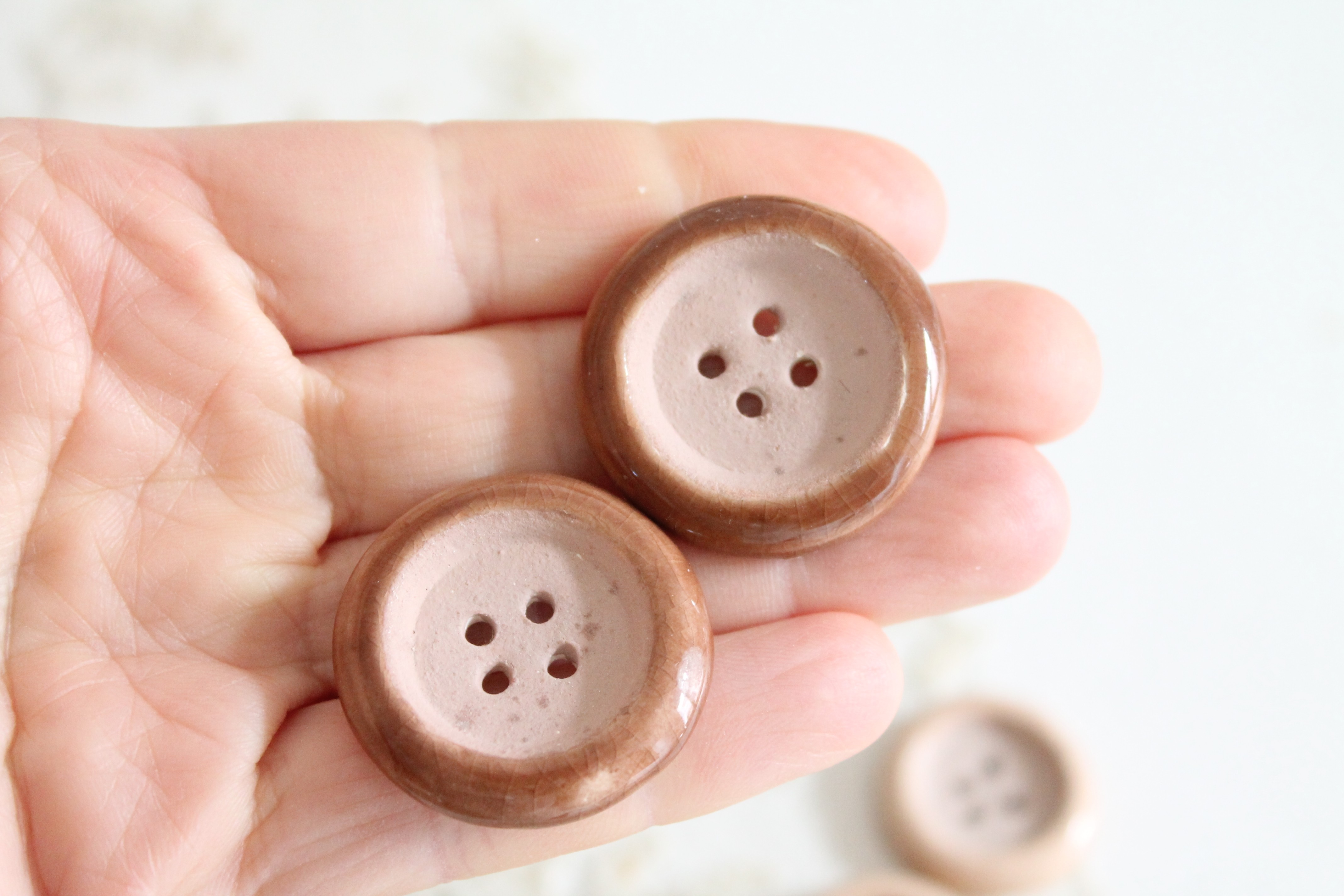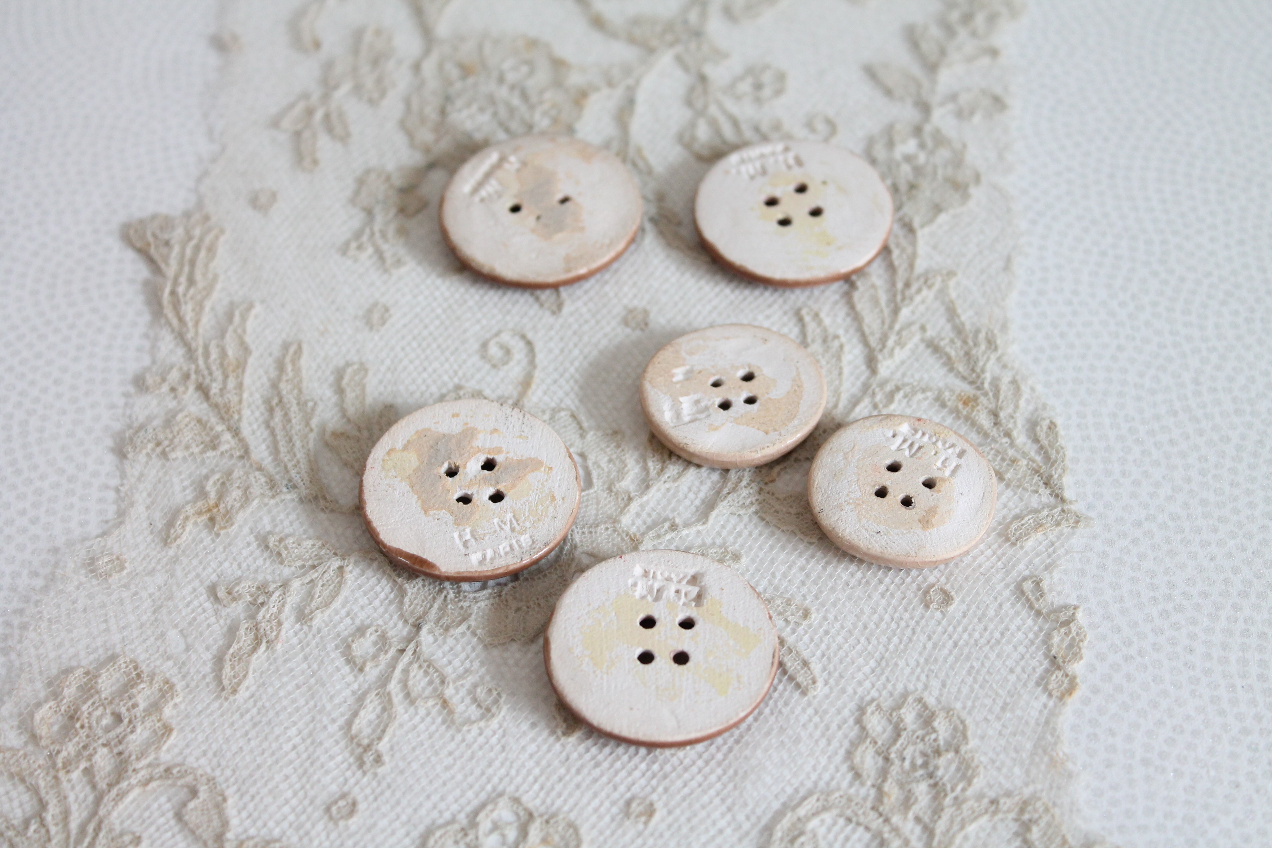 Boutons de parurier céramique 1940 Paris France, Marque en creux H.M. PARIS, Hélène MECHIN, 4240