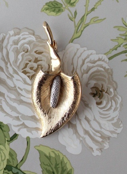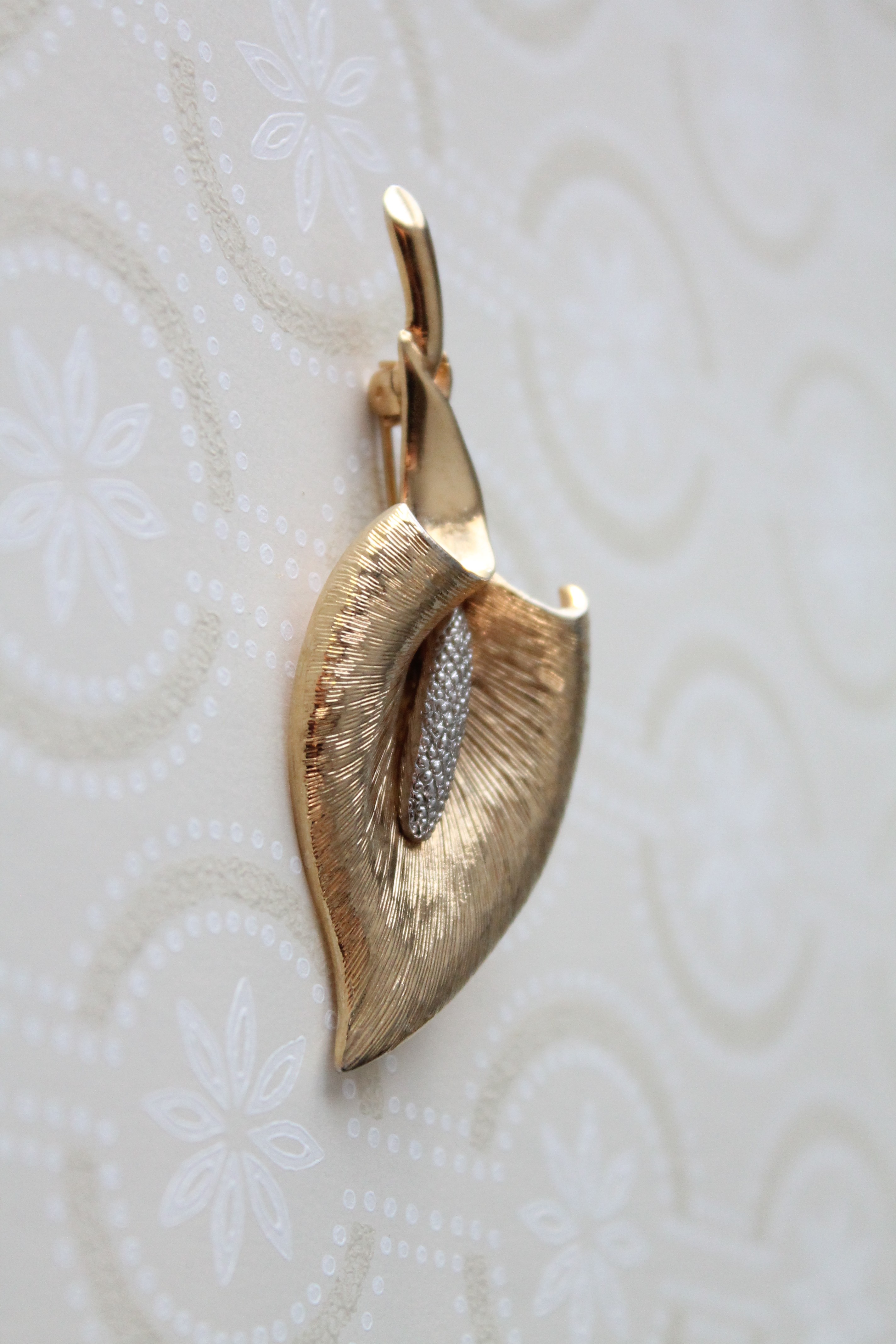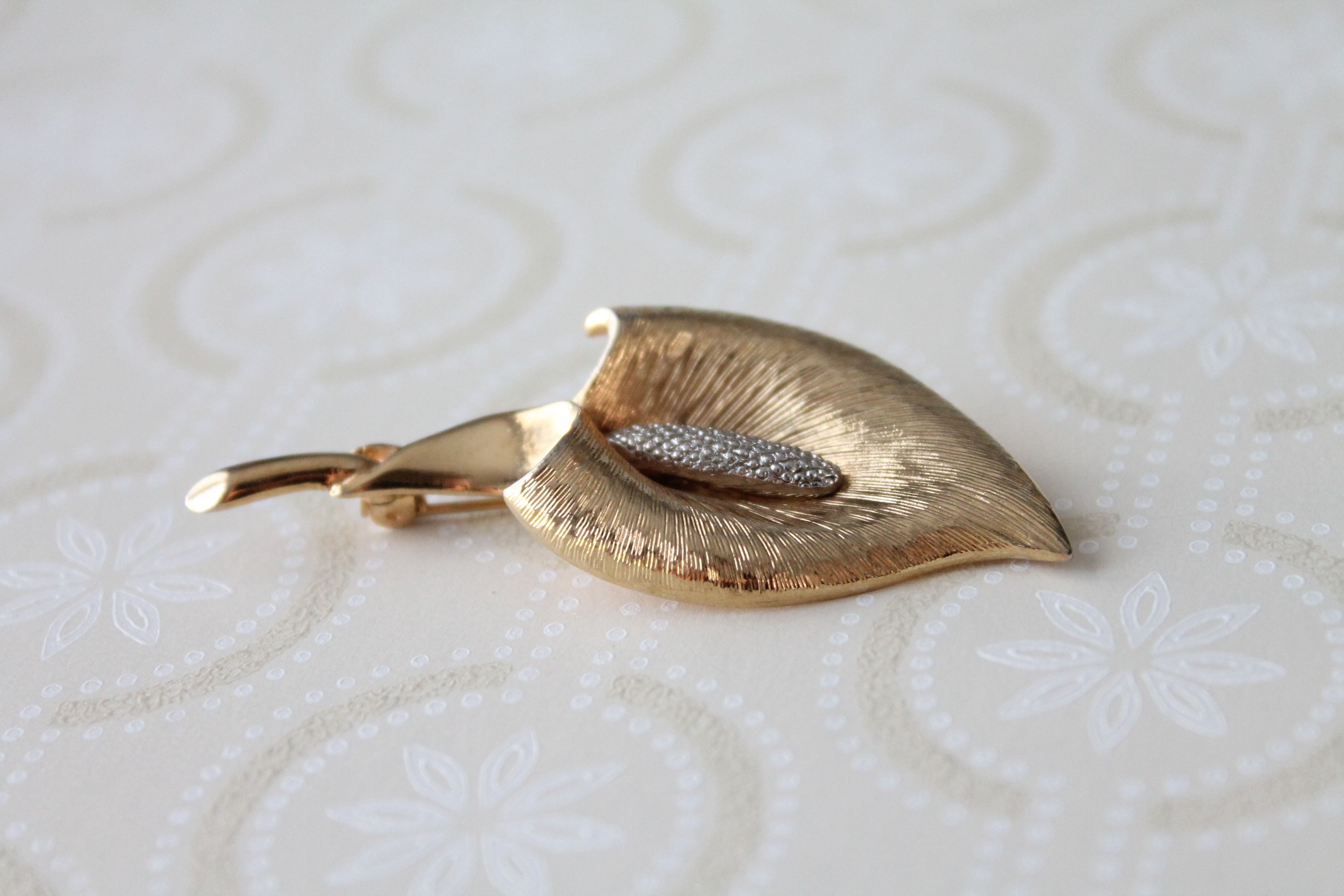 Broche dorée et argentée fleur en laiton :