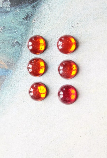 6 cabochons orange vif translucide en verre, vintage Diamètre : 1 cm, 1375